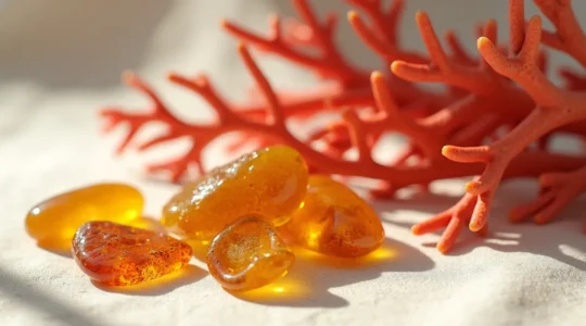 L’ambre, résine fossilisée vieille de millions d’années, séduit par sa chaleur et ses inclusions préhistoriques parfois spectaculaires. Sa légèreté et sa douceur au toucher le distinguent des imitations en plastique. Comme toutes les matières organiques, il est poreux et sensible aux solvants, à la chaleur et aux rayures. Le corail, devenu rare et protégé par des réglementations strictes, partage ces caractéristiques de fragilité.